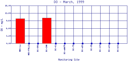 Longitudinal Dissolved Oxygen Profiles for March, 1999