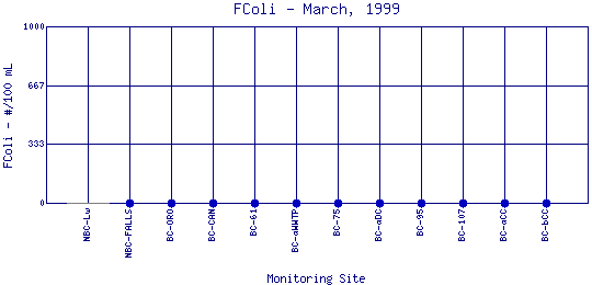 Longitudinal Fecal Coliform Profiles for March, 1999