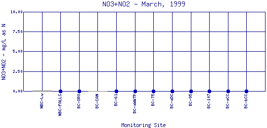 Longitudinal Nitrate + Nitrite Profiles for March, 1999