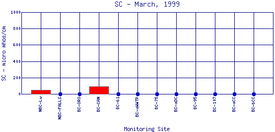 Longitudinal Specific Conductance Profiles for March, 1999