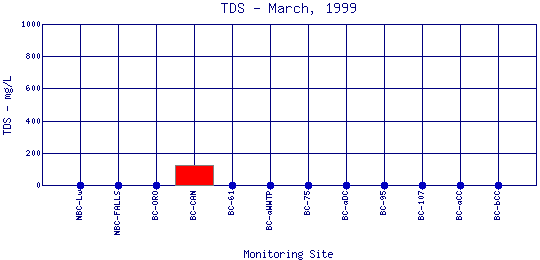 Longitudinal Total Dissolved Solids Profiles for March, 1999