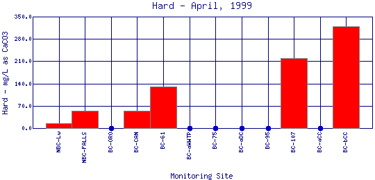 Hardness generally refers to the amount of calcium and magnesium in water. In household use, these cations (ions with a charge greater than +1) can prevent soap from sudsing and leave behind a white scum in bathtubs. In the aquatic environment, calcium and magnesium help keep fish from absorbing metals, such as lead, arsenic, and cadmium, into their bloodstream through their gills. Therefore, the harder the water, the less easy it is for toxic metals to absorb onto gills. Water in the Boulder Creek watershed is generally soft because the water comes mainly from melting snow which is low in minerals and metals.