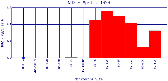 The above map indicates water quality monitoring sites. To view data at a specific site select it from the map with the mouse.