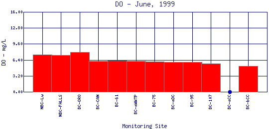 Longitudinal Dissolved Oxygen Profiles for June, 1999