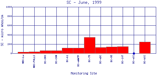 Longitudinal Specific Conductance Profiles for June, 1999