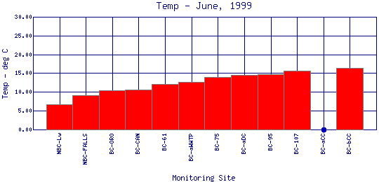 The above map indicates water quality monitoring sites. To view data at a specific site select it from the map with the mouse.