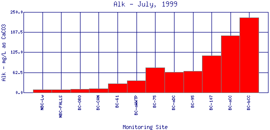 Alkalinity refers to how well a water body can neutralize acids. Alkalinity measures the amount of alkaline compounds in water, such as carbonates (CO3 2-), bicarbonates (HCO3 -), and hydroxides (OH-). These compounds are natural buffers that can remove excess hydrogen ions that have been added from sources such as acid rain or acid mine drainage. Alkalinity mitigates or relieves metals toxicity by using available HCO3 - and CO3 2- to take metals out of solution, thus making it unavailable to fish. Alkalinity is affected by the geology of the watershed; watersheds containing limestone will have a higher alkalinity than watersheds where granite is predominant. The Boulder Creek Watershed is composed primarily of granite rocks, thus the water has a lower alkalinity content.
