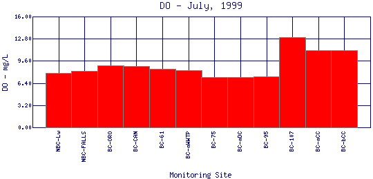 Longitudinal Dissolved Oxygen Profiles for July, 1999