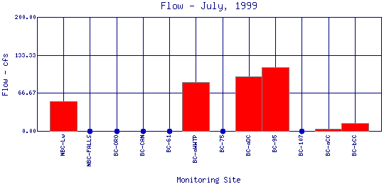 The above map indicates water quality monitoring sites. To view data at a specific site select it from the map with the mouse.