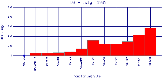 Longitudinal Total Dissolved Solids Profiles for July, 1999