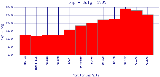 Longitudinal Water Temperature Profiles for July, 1999