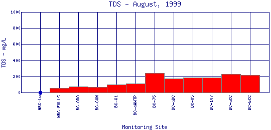 Longitudinal Total Dissolved Solids Profiles for August, 1999