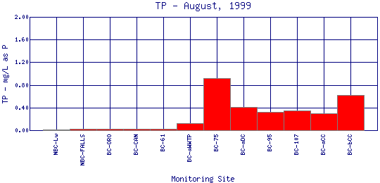 The above map indicates water quality monitoring sites. To view data at a specific site select it from the map with the mouse.