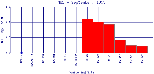 The above map indicates water quality monitoring sites. To view data at a specific site select it from the map with the mouse.
