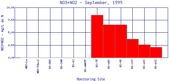 Longitudinal Nitrate + Nitrite Profiles for September, 1999