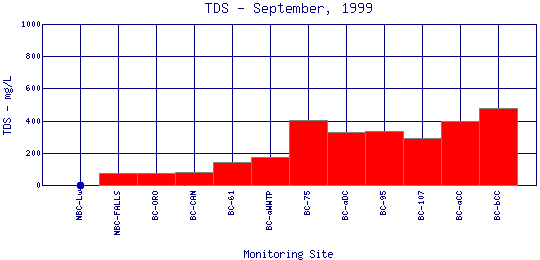 Longitudinal Total Dissolved Solids Profiles for September, 1999