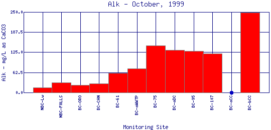 Alkalinity refers to how well a water body can neutralize acids. Alkalinity measures the amount of alkaline compounds in water, such as carbonates (CO3 2-), bicarbonates (HCO3 -), and hydroxides (OH-). These compounds are natural buffers that can remove excess hydrogen ions that have been added from sources such as acid rain or acid mine drainage. Alkalinity mitigates or relieves metals toxicity by using available HCO3 - and CO3 2- to take metals out of solution, thus making it unavailable to fish. Alkalinity is affected by the geology of the watershed; watersheds containing limestone will have a higher alkalinity than watersheds where granite is predominant. The Boulder Creek Watershed is composed primarily of granite rocks, thus the water has a lower alkalinity content.