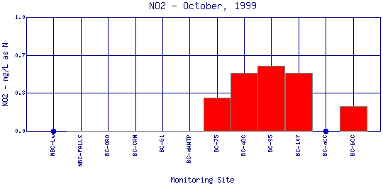 The above map indicates water quality monitoring sites. To view data at a specific site select it from the map with the mouse.
