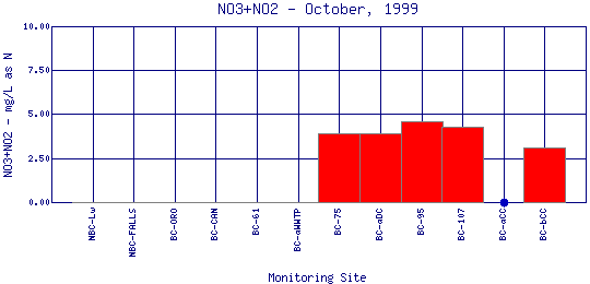 Longitudinal Nitrate + Nitrite Profiles for October, 1999
