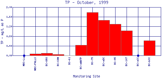 The above map indicates water quality monitoring sites. To view data at a specific site select it from the map with the mouse.