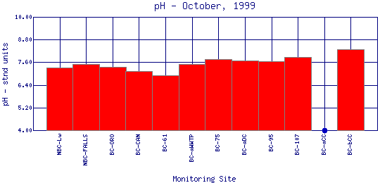 The above map indicates water quality monitoring sites. To view data at a specific site select it from the map with the mouse.