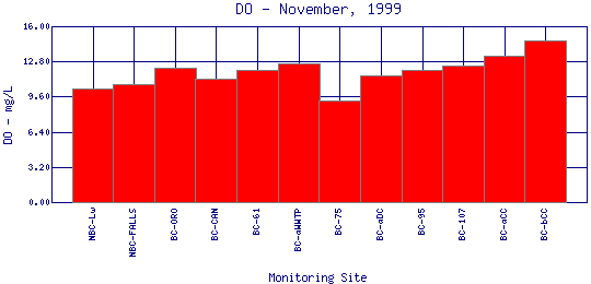 Longitudinal Dissolved Oxygen Profiles for November, 1999