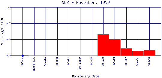 The above map indicates water quality monitoring sites. To view data at a specific site select it from the map with the mouse.