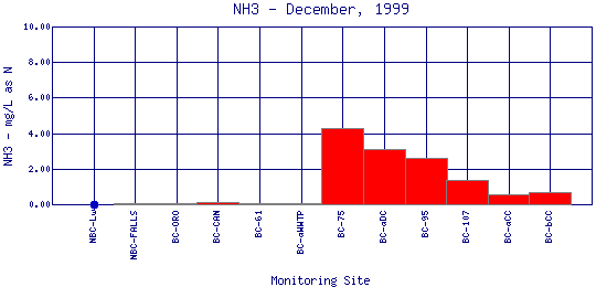 The above map indicates water quality monitoring sites. To view data at a specific site select it from the map with the mouse.