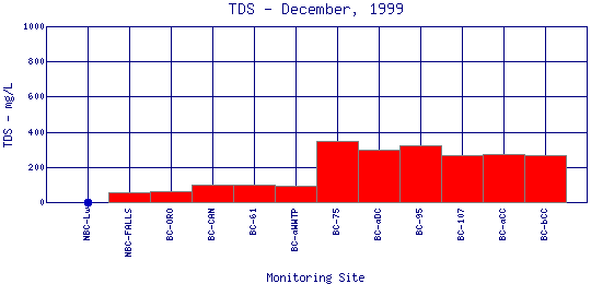Longitudinal Total Dissolved Solids Profiles for December, 1999