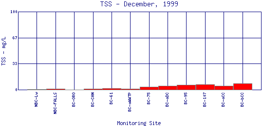 Longitudinal Total Suspended Solids Profiles for December, 1999