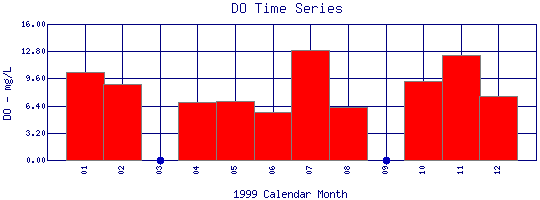 Dissolved Oxygen Time Series for 1999 Boulder Creek at 107th St |