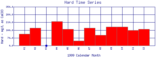 Total Hardness Time Series for 1999 Boulder Creek at 107th St |