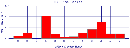 Nitrite Time Series for 1999 Boulder Creek at 107th St |