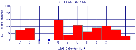 Specific Conductance Time Series for 1999 Boulder Creek at 107th St |