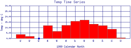 Water Temperature Time Series for 1999 Boulder Creek at 61st St. |