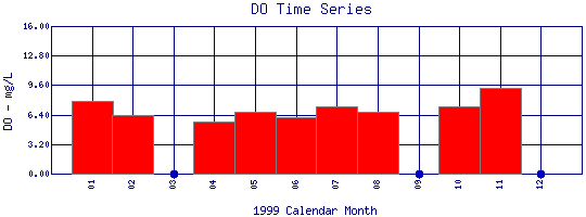 Dissolved Oxygen Time Series for 1999 Boulder Creek at 75th St |