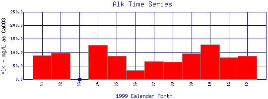 Total Alkalinity Time Series for 1999 Boulder Creek at 95th St |