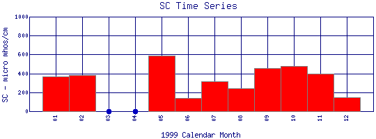 Specific Conductance Time Series for 1999 Boulder Creek at 95th St |