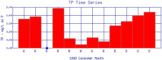 Total Phosphate Time Series for 1999 Boulder Creek at 95th St |
