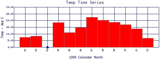 Water Temperature Time Series for 1999 Boulder Creek at 95th St |
