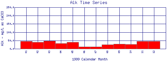 Total Alkalinity Time Series for 1999 Boulder Creek at Eben G. Fine Park |