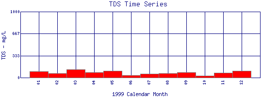 Total Dissolved Solids Time Series for 1999 Boulder Creek at Eben G. Fine Park |