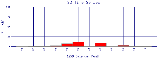 Total Suspended Solids Time Series for 1999 Boulder Creek at Eben G. Fine Park |