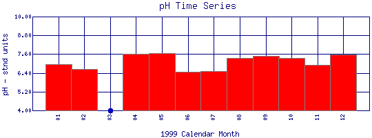 pH Time Series for 1999 Boulder Creek at Orodell |