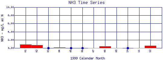 Ammonia Time Series for 1999 Boulder Creek Above Coal Creek |