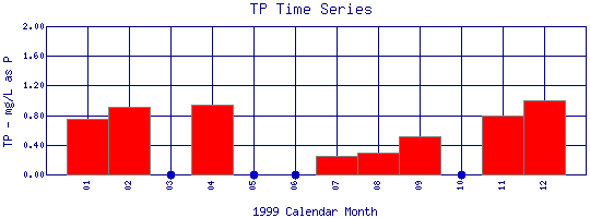Total Phosphate Time Series for 1999 Boulder Creek Above Coal Creek |