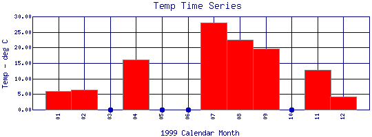 Water Temperature Time Series for 1999 Boulder Creek Above Coal Creek |
