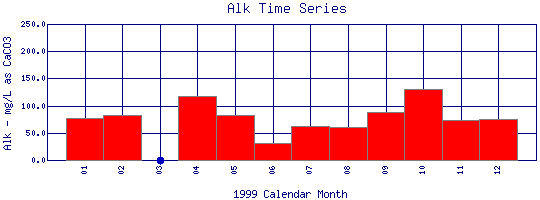 Total Alkalinity Time Series for 1999 Boulder Creek above Dry Creek |