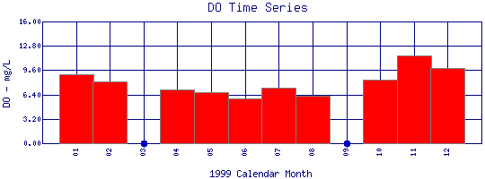 Dissolved Oxygen Time Series for 1999 Boulder Creek above Dry Creek |