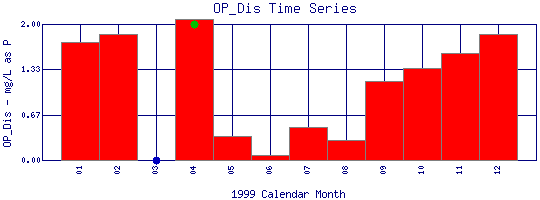 Ortho-phosphate Time Series for 1999 Boulder Creek above Dry Creek |